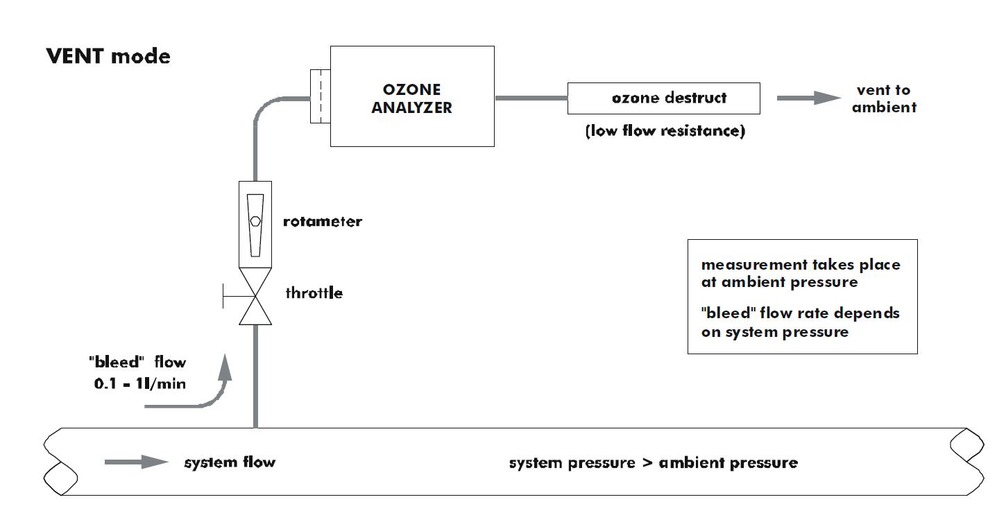 分析儀與臭氧系統(tǒng)的連接:全流量,旁路,排氣模式